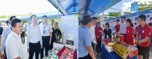 顾刚副省长,海南省农业农村厅孙法军副厅长等人员认真询问和聆听了每个单位展位成果与技术,并进行了深入的沟通交流,对公司三亚南繁研究院的热带设施甜瓜产业提质升级科技小院的模式与发展,农业机械化新技术与装备,林下种植魔芋助农增收等科研成果给予高度评价和肯定。