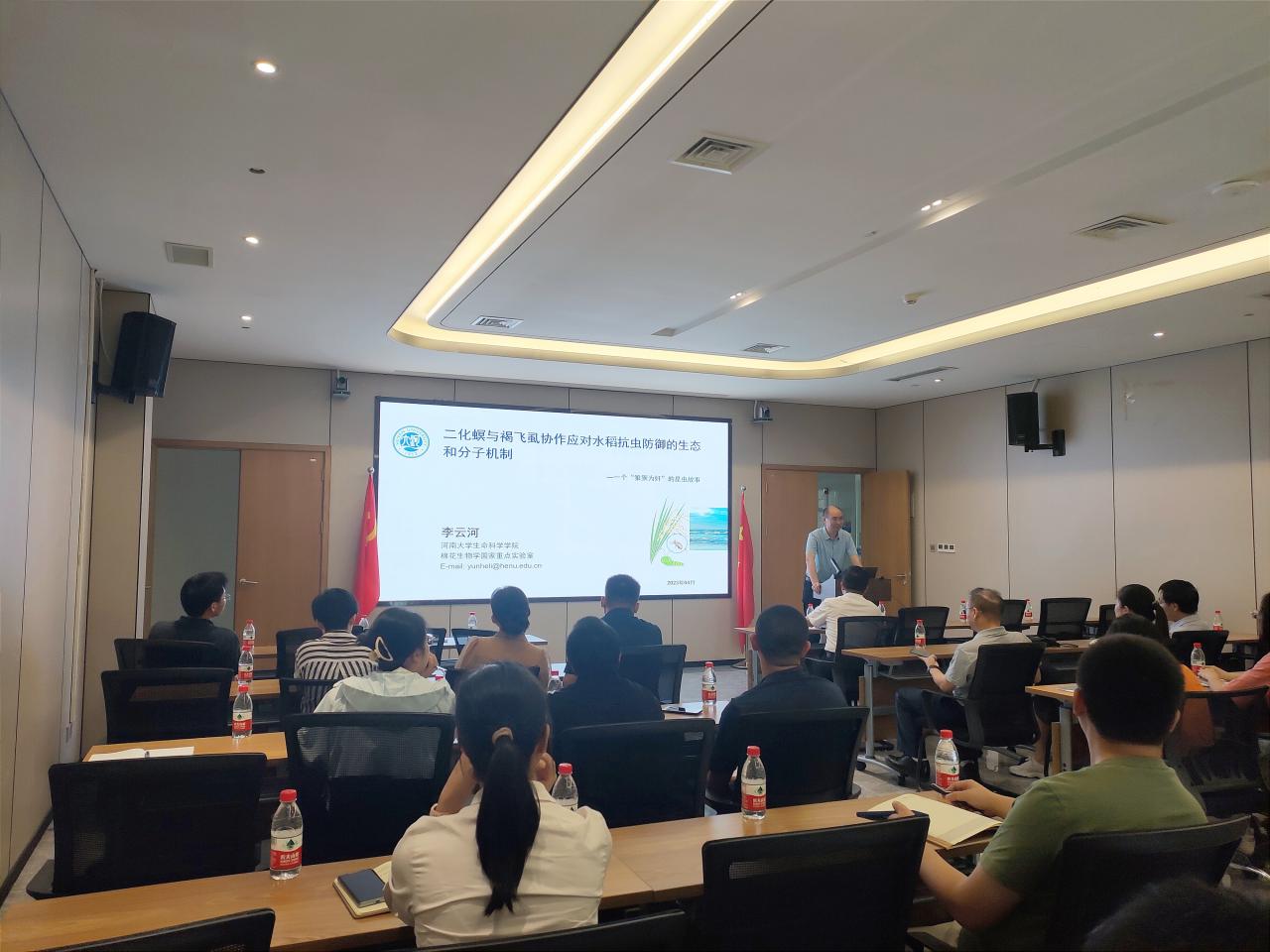 2023年4月14日上午,河南大学李云河教授和BEVITOR伟德热带作物公司夏志辉教授应邀莅临公司三亚南繁研究院,围绕“二化螟与褐飞虱协同应对水稻抗虫防御的生化和分子机制—一个“狼狈为奸”的昆虫故事”和“应用基因改造策略培育广谱抗病水稻”主题,为公司师生带来了两场精彩的学术讲座。本次高端学术讲座由副经理杨小锋主持。