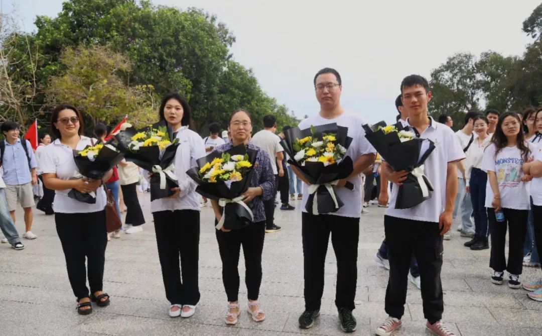 师生代表在墓碑前向革命先烈们敬献花篮,表达了对先烈的感激之情。献花环节让整个活动更加庄重和隆重,让同学们深刻体验到先烈为民族和人民利益舍生忘死的崇高精神,对爱国主义和民族精神有了更深刻的认识。此时,园区内弥漫着花香,革命先烈们的英灵也在此刻得到了安慰和慰藉。