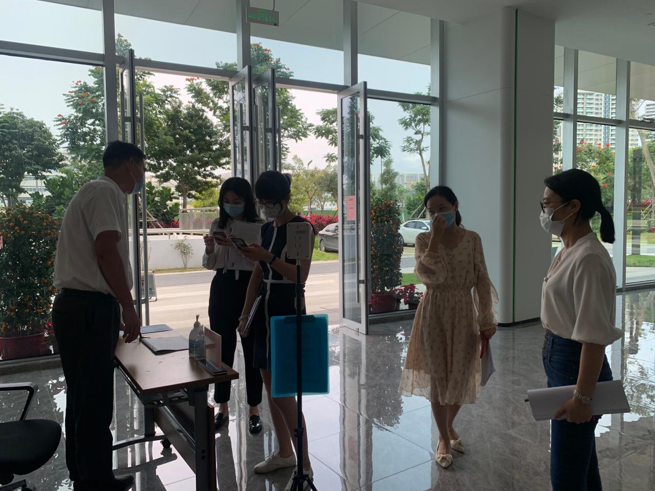 2022年3月16日中午12:30,由钟祥涛副书记、韩晓燕主任、夏玲、邱惠英接待前往公司就疫情防控相关工作进行交流检查的三亚崖州湾科技城管理局周肖雅处长、涂紫归老师等人员。