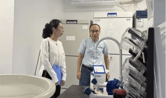 汇报结束后,冯建成处长、侯巨梅老师深入实验教学现场,实地察看各类仪器设备的运行状态、使用维护情况,全面核实项目建设实效。