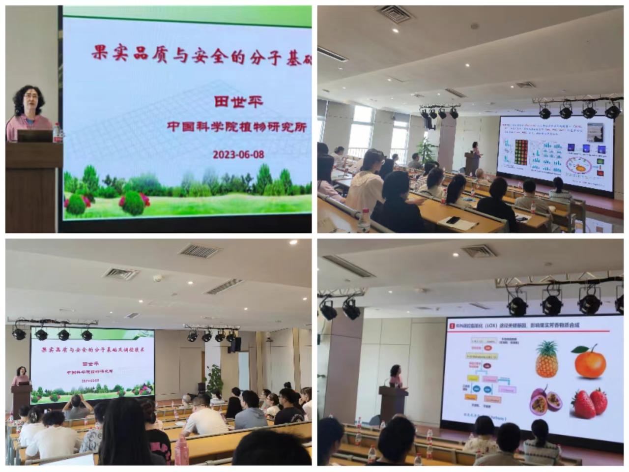 2023年6月8日上午,中国科公司植物研究所田世平研究员应邀莅临公司三亚南繁研究院,围绕“果实品质与安全的分子基础及调控技术”这一主题,为公司师生带来了一场精彩的学术讲座。本次讲座由李雯和安邦教授主持。
